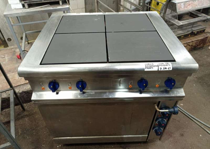 Электрическая плита ES-T47/1 есть четыре квадратные конфорки из чугуна, габаритом 300х300 миллиметров. Производительность каждой конфорки составляет 2,5 кВт. Действующая температура поверхности конфорки достигает 430 градусовC, а срок разогрева до предельной температуры составляет не более 20 мин.