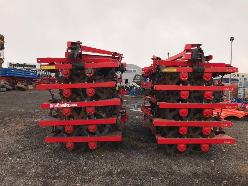 ОписаниеКаток кольчато-шпоровый (чугунный) 5ККШ-10:Каток кольчато-шпоровый (чугунный) 5ККШ-10 предназначен для предпосевного и послепосевного прикатывания почвы. Технические характеристики: Производительность 13 га Скорость рабочая до 13 км/ч Ширина захвата общая (5 секции) 10,3 м Число колес в секции 13 шт Диаметр колеса 475 мм Ширина захвата одной секции 2400 мм Масса 3 600 кг Габариты в рабочем положении 7390х10340х475 мм Габариты в транспортном положении, ДхШхВ 1500х2400х1700 мм Показать все