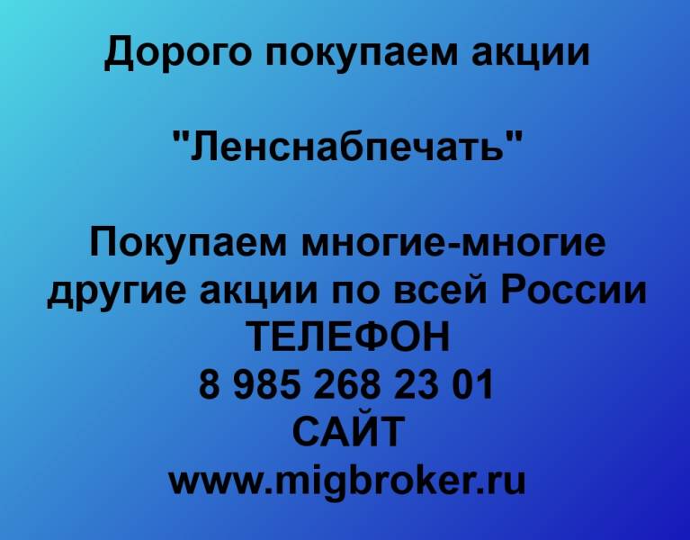 Покупаем акции «Ленснабпечать» на Ehkskavator.ru. Цена: 1000000 рублей, Фото. Ищите где купить технику, запчасти, оборудование, материалы, инструменты? Объявления о Покупаем акции «Ленснабпечать» от компаний и частных лиц и в других городах России! на страницах доски объявлений Ehkskavator.ru