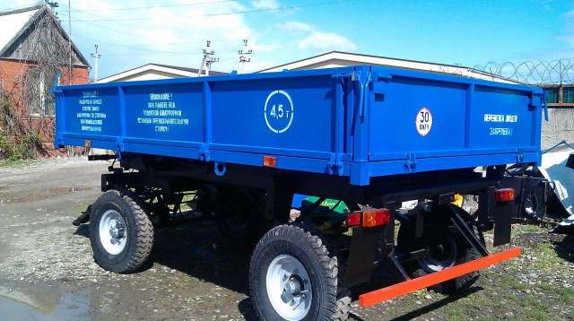 ТЕХНИЧЕСКИЕ ХАРАКТЕРИСТИКИ Вид Прицепной Грузоподъёмность, килограмм, не более 4500 Емкость кузова с Главными бортами, м3, не более 5,0 Емкость кузова с надставными цельнометаллическими бортами(485мм), м3, не более 10,0 Емкость кузова с надставными сетчатыми бортами(1000мм), м3, не более 14,5 Площадь кузова, м², как минимум 9,5 Сумма осей, шт. 2 Ширина колеи, м, не более 1,85 Сумма колес на каждой оси, шт. 2 База, м, как минимум 2,7 Транспортная Быстрота, км/ч, не более 30 вес модификационная, килограмм, не более 1630 разделение массы по осям, килограмм, не более - передняя ось 3241 задняя ось 2889 Размерные Габариты, миллиметров, не более: длина 5900: ширина 2410: высота 1830 Сумма сторон выгрузки, шт 3 Дорожный просвет, миллиметров, как минимум 300 Высота Главных бортов, миллиметров, не более + 530 высота надставных цельнометаллических бортов, миллиметров, не более 485 высота надставных сетчатых бортов, миллиметров, не более 1000 Высота погрузки по, миллиметров, не более: полу кузова 1300: бортам 1830 Угол подъёма кузова (по наклону пола платформы), град, как минимум -: при выгрузке назад 50: при выгрузке на стороны 50 Сумма наблюдающего персонала, чел.t 1 Вид тормозной Механизмы Пневматическая, однопроводная на колеса передней оси Вид тормозных Системаов Барабанные Коэффициент задействования заменного времени, как минимум 0,5 Коэффициент технологического наблюдения, как минимум 0,8 Коэффициент проверенности исполнения технологического процесса, как минимум 0,99 Оператив