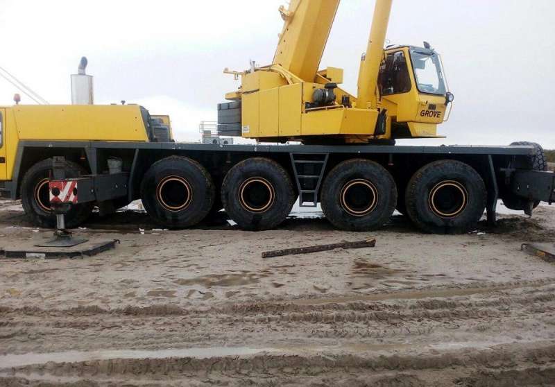 кран стреловой автомобильный GROVE GMK 5100. 2000 года производства. производительность мотора - 469 л.с. Общий наработка 57 629 км. пробег верхнего мотора крановой устройства 27 000 мото/часов.